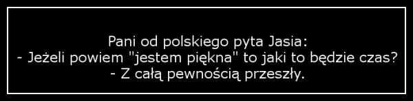 Cześć powiem tak dzisiejszy dzień mogłabym nazwać dniem smutku i sztywności.Dlaczego? Bo w szkole atmosfera sztywna jak nie wiem co. Zero jakiegokolwiek uśmiechu ze strony innych.Dalej pogoda też nie była jakaś taka za fajna.Ale przecież trza się uśmiechnąć.No to co sucharek na uśmieszek :)